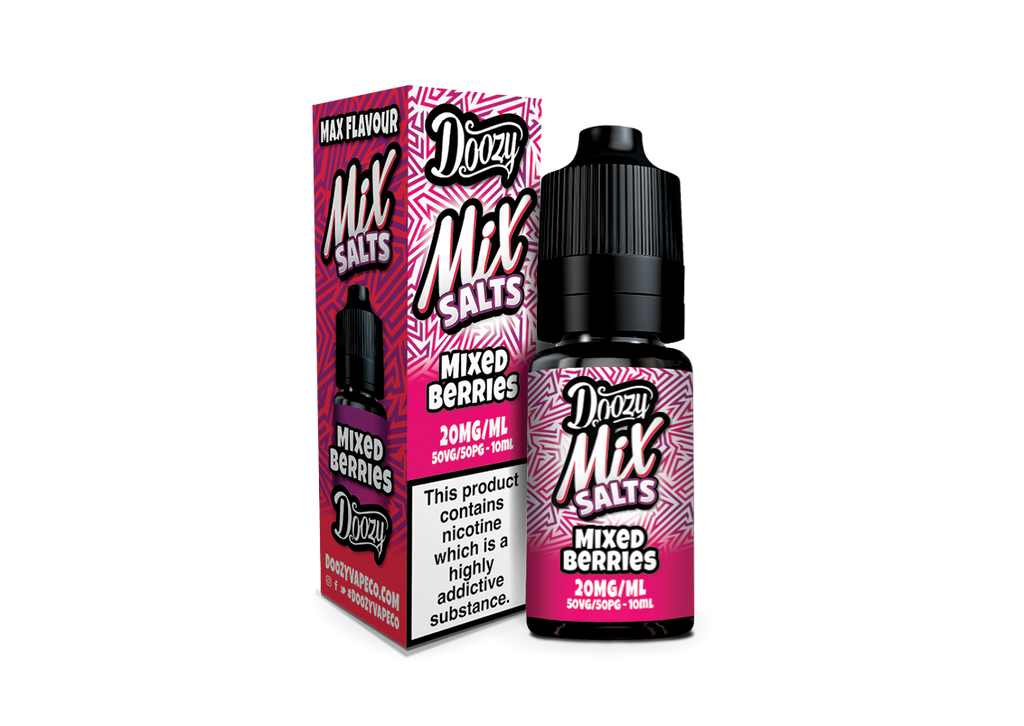Doozy Mix Salts Nic Salt E-liquid is available in a 10ml bottle. The VG/PG Percentage Ratio is 50%VG/50%PG and has 20mg Nicotine strength. It uses pharmaceutical grade Nicotine which delivers a smooth hit of nicotine, combined with our super tasty flavours delivers an immensely satisfying vape.